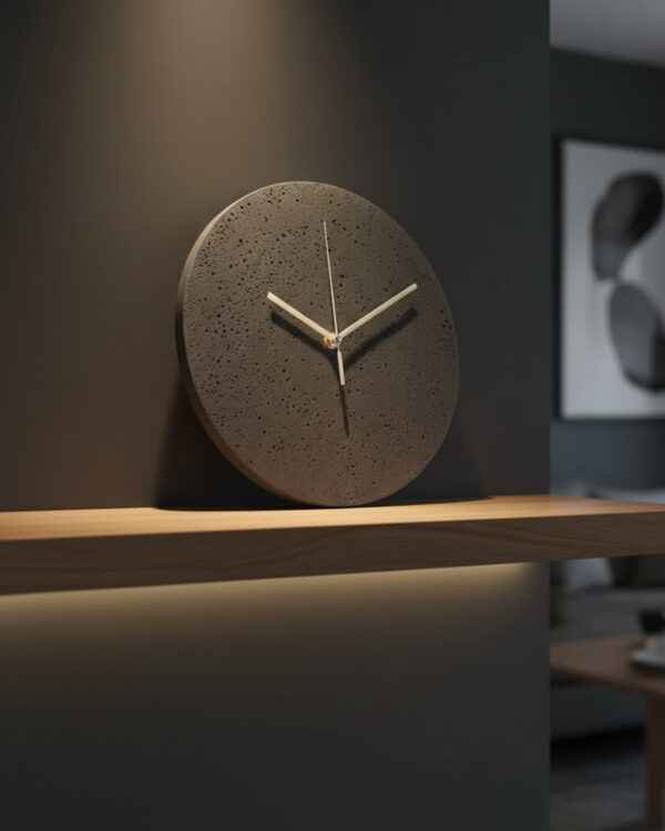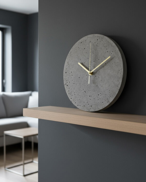 Beton architektoniczny przestał być materiałem kojarzonym wyłącznie z budownictwem. Dziś to synonim nowoczesnego designu. Nasze zegary z betonu to propozycja dla osób, które szukają niebanalnych dodatków. Surowa, porowata struktura tarczy kontrastuje z biżuteryjnym blaskiem złotych wskazówek, tworząc efektowną dekorację ścienną, obok której nie sposób przejść obojętnie.