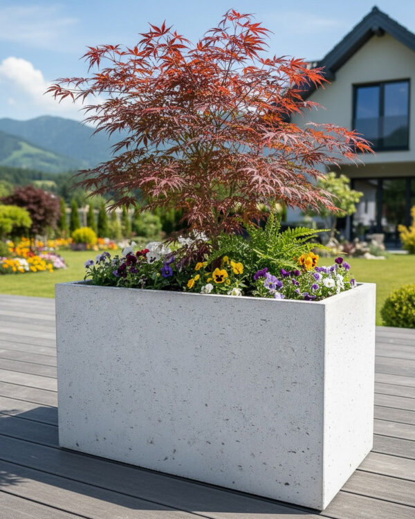 Beton architektoniczny to materiał niezwykle uniwersalny, co pozwala na tworzenie elementów dopasowanych do każdego stylu – od surowego industrializmu po ciepły styl rustykalny. Choć beton kojarzy się z szarością, nowoczesne donice ogrodowe występują w kilku odcieniach.