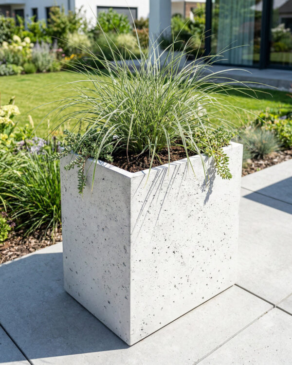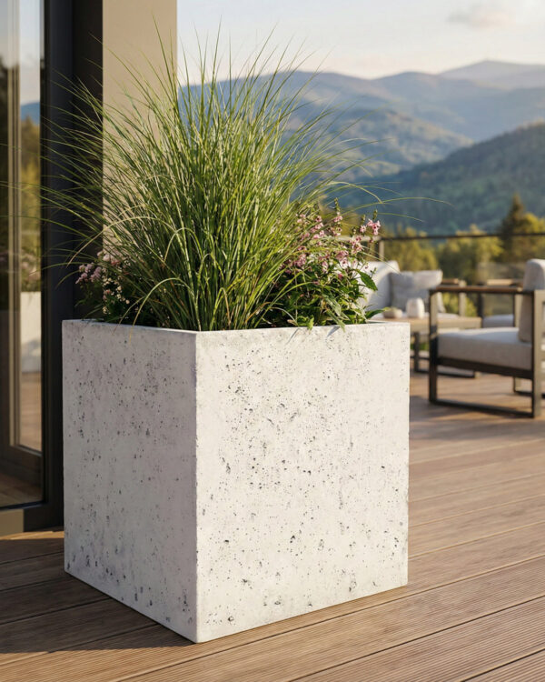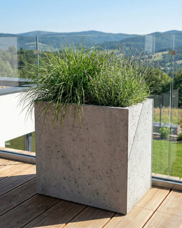 Donica z betonu architektonicznego w rozmiarze 60×60×60 cm pozwala stworzyć wyrazisty, nowoczesny akcent w aranżacji przestrzeni dzięki swojej proporcjonalnej, geometrycznej formie. Duży, symetryczny format podkreśla surowe piękno betonu architektonicznego i nadaje otoczeniu elegancki, minimalistyczny charakter, jednocześnie eksponując roślinę w efektowny sposób. Taki rozmiar doskonale sprawdza się zarówno w przestrzeniach zewnętrznych, jak i we wnętrzach, zapewniając stabilność, trwałość oraz estetyczne, prestiżowe wykończenie.