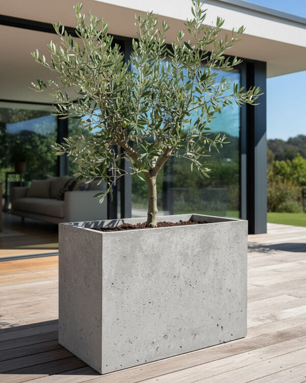 Ten model idealnie wpasuje się jako: designerski soliter w ogrodzie, geometryczna donica betonowa kwadratowa na wejście oraz luksusowy element małej architektury.