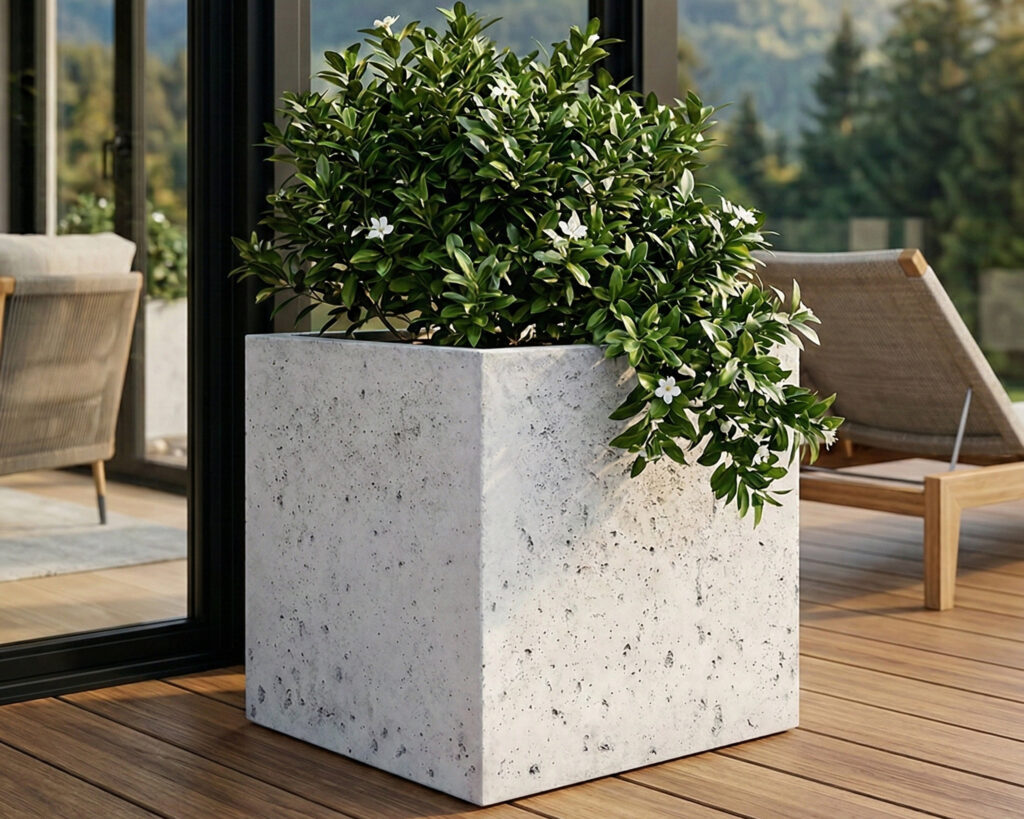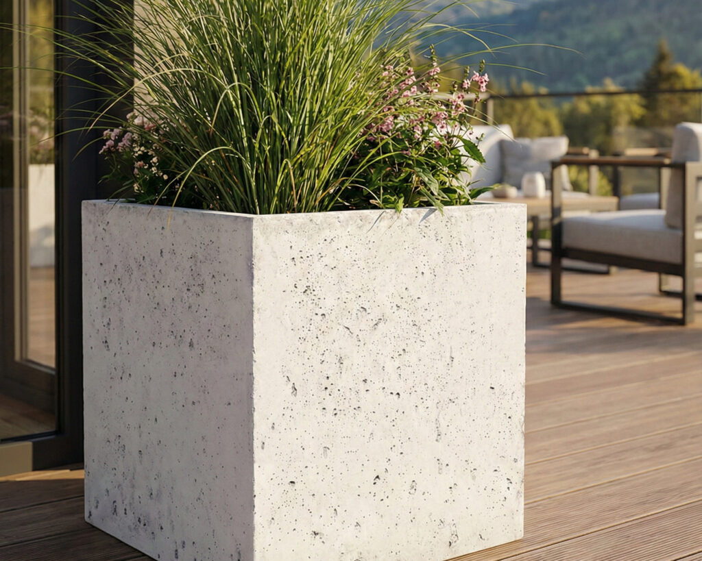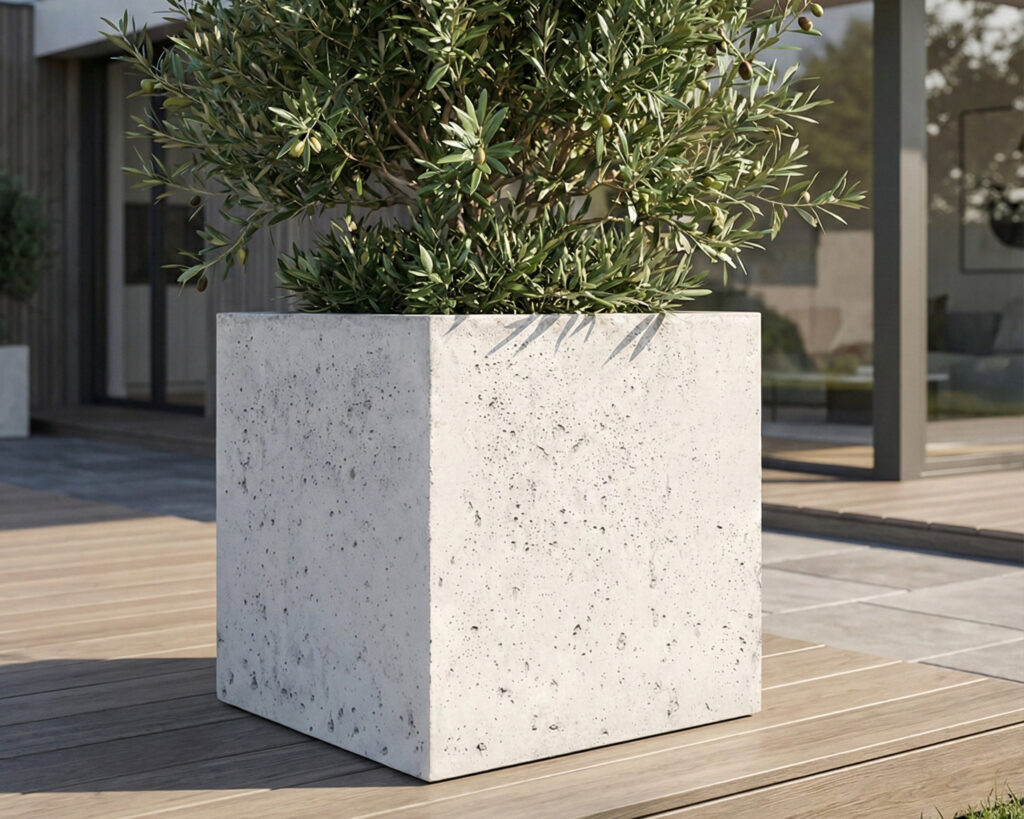 DONICA BETONOWA CALDEA 60X60X60 (BIAŁA) – KWADRATOWA DONICA OGRODOWA