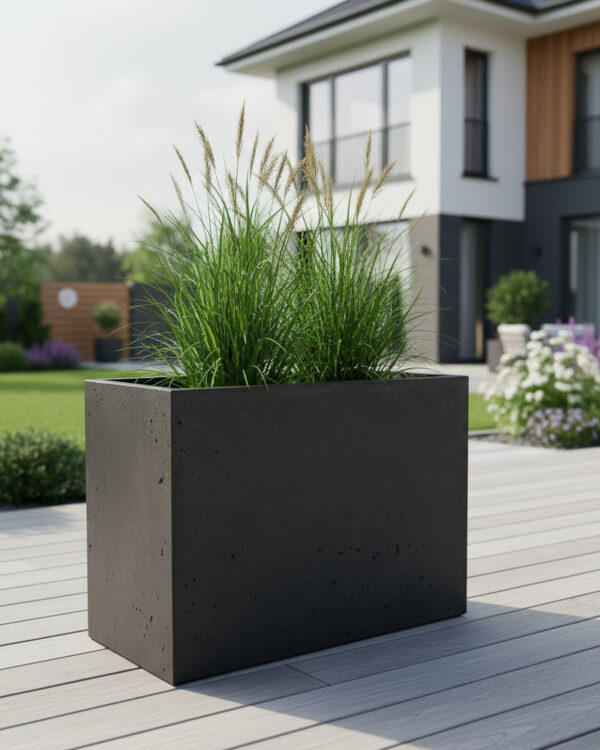 Model CALDEA o wymiarach 80x40x60 cm jest szczególnie ceniony przez architektów krajobrazu. Ten format doskonale sprawdza się jako donica betonowa prostokątna do tworzenia wizualnych ścian lub separacji stref. Należy podkreślić, że dzięki wysokości 60 cm, jest to również stabilna donica betonowa wysoka, która zapewnia odpowiednią głębokość dla systemów korzeniowych.