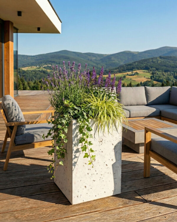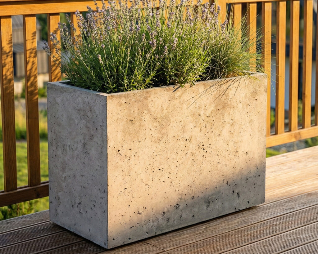 Donica z betonu architektonicznego w rozmiarze 80×40×60 cm to eleganckie i funkcjonalne rozwiązanie, które wprowadza do przestrzeni nowoczesny, uporządkowany charakter. Jej wydłużona, prostokątna forma nadaje aranżacji lekkości, a jednocześnie podkreśla surowe, szlachetne wykończenie betonu architektonicznego. Harmonijne proporcje sprawiają, że donica stanowi wyrazisty, lecz nienachalny element dekoracyjny, który doskonale eksponuje zarówno pojedyncze rośliny, jak i kompozycje z kilku gatunków.