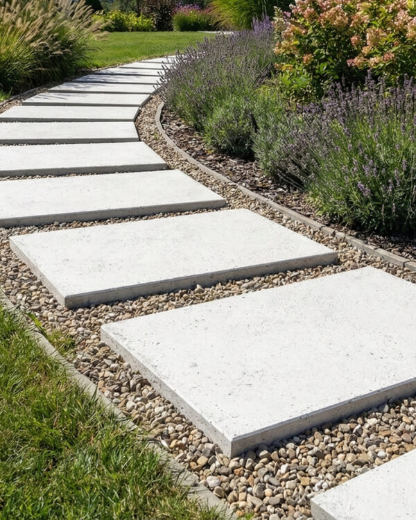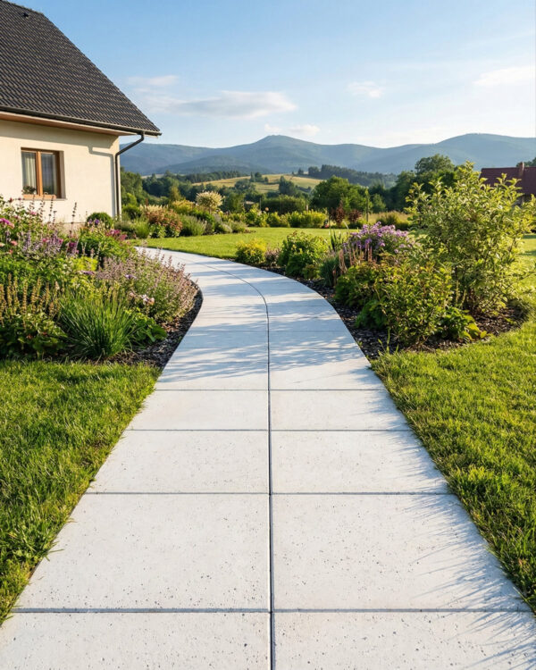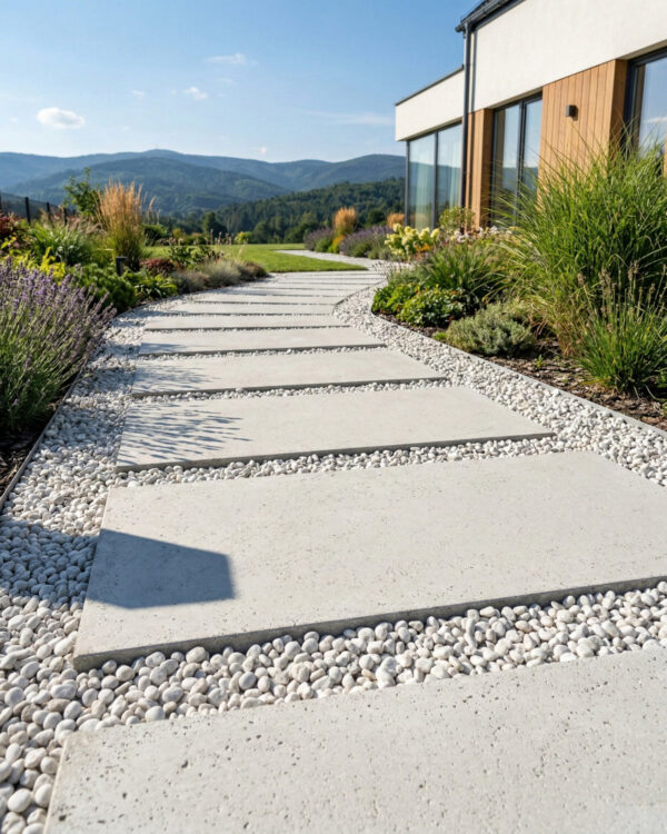 Płyta chodnikowa z betonu w rozmiarze 120×60 cm to nowoczesne rozwiązanie, które pozwala uzyskać estetyczną i uporządkowaną nawierzchnię przy ograniczonej liczbie łączeń. Prostokątny format umożliwia tworzenie różnorodnych układów aranżacyjnych, nadając przestrzeni elegancki i minimalistyczny charakter. Płyty w tym rozmiarze doskonale sprawdzają się w przestrzeniach zewnętrznych, takich jak tarasy, ścieżki ogrodowe, podjazdy czy strefy wypoczynkowe wokół domu.